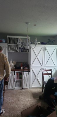 Love it!... Fits perfectly with the Farmhouse style that I have in my dining and kitchen area. This nice white chandelier blends well with my delft blue dishes and white cabinetry. Also provides great lighting over the dining table. Excellent pic overall.