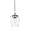Collection: Willow, Material: Steel, Finish Color: Brushed Nickel, Width: 5.75", Height: 16.5", Hanging Method: Stem, Lamping Type: Incandescent, Number Of Bulbs: 1, Wattage: 60 Watts, Moisture Rating: Dry Rated, Desc: This single pendant from the willow collection has understated elegance. It features minimal details, clear curved glass with a satin brass finish and can fit into any decor.,