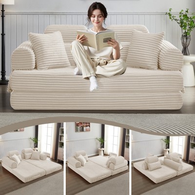 Living Room 4-in-1 Folding Sofa Bed & Chair Bed - Convertible Sleeper, Fold Out Loveseat Sofa Couch w/ Pillow, Tufted Floor Lounge