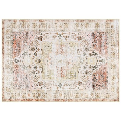 Living Room Rug 10x13 Large Lint-Free Vintage Printed Rug, Non-Slip Farmhouse Antique Indoor Rug, Washable Low Pile Rug for Bedroom, Brown