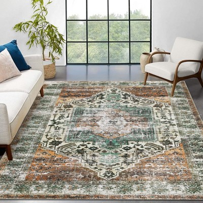 Living Room Rug, 4x6 Rug, Washable Rug, Soft Indoor Non-Slip Rug, Oriental Antique Print Rug, Bohemian Style, Lint-Free and Beautiful Rug