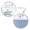 Introduce your little one to the world with this sweet newborn gift set. Featuring a 100% cotton jersey swaddle wrap, matching beanie and a double-sided birth announcement card, you can welcome your baby in style. The hello world birth announcement card features another side you can record your baby’s details; making it perfect for baby’s photo book.