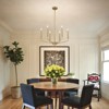 This 6-light chandelier pairs modern simplicity with classic candle-style design. Crafted from durable iron and finished in sleek gold, it features gracefully curved arms and E12 sockets to accommodate up to 60W bulbs. The adjustable rods and 180¡ã swivel canopy provide flexible installation on both flat and sloped ceilings. With a height range from 23 5/8" to 77 11/16", it fits various ceiling heights. ETL label included for compliance and peace of mind.