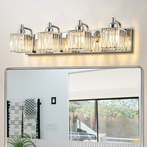 LLHZSY Dimmable Square Bathroom Crystal Vanity Light Wall Sconces - 4-Light - Chrome