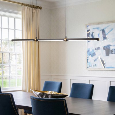 Add a modern and minimalist touch to your space with this Kitchen Island Pendant Lighting LED Linear Light Fixture. Featuring sleek lines and a simple design, it delivers a warm, soft 3000K glow, perfect for creating a cozy atmosphere over your kitchen island, dining table, or any room. This fixture is equipped with a built-in 20W LED light that provides 1800 lumens of brightness, ensuring ample light while maintaining energy efficiency. The adjustable height (up to 86 2/3 inches) makes it versatile for various spaces, and its fully dimmable feature allows you to customize the brightness to fit your needs. Available in black, brass, or nickel finishes, this pendant light enhances modern, industrial, or minimalist styles.