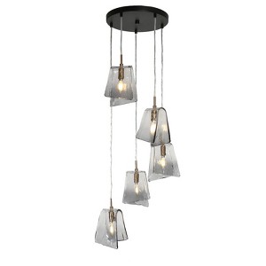 Create a soft focal point in your entryway, stairwell, or dining nook with this cluster pendant, featuring multiple ice-textured glass shades that cascade from a round canopy at varying heights. Each sculptural glass shade diffuses the light so it feels warm and welcoming, while still bright enough to define the space. The combination of clear, rippled glass and warm brass accents gives the fixture a quietly luxurious presence that works just as well in modern interiors as in more transitional settings.
