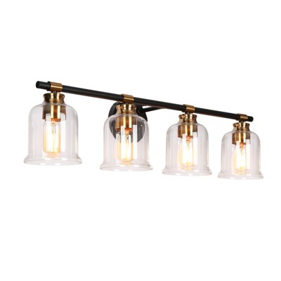 LNC Aries 4-Light Farmhouse Bathroom Vanity Light – Rustic Wood and Black Metal with Mason Jar Clear Glass Shades, 29 in Wide