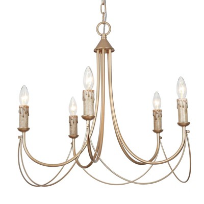 Design: This semi-flush fixture blends modern and vintage with its gold frame and five softly flared clear glass shades,ideal for lower ceilings in kitchens or casual dining spaces.