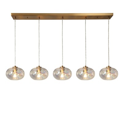 The Chrysaorican Collection captures the allure of modern luxury through the delicate shimmer of iridescent glass and the warmth of electroplated copper. When the lights are turned on, the hand-blown globes scatter colorful, rainbow-like reflections across the room, creating a lively, festive glow that feels perfect for parties, holidays, and cozy everyday gatherings. The collection includes shaded chandeliers (Items 1004103740, 1004103807), cluster chandeliers (Items 1004133943, 1004133927), kitchen island lights (Items 1004180351, 1004180359), a mini pendant (Item 1004180362), and wall sconces (Item 1004193897), each crafted with clean lines and graceful geometry for a balanced, contemporary look. Whether brightening a dining area, kitchen island, living room, or hallway, the Chrysaorican Collection brings refined sophistication and a radiant, party-ready ambiance to your home, turning ordinary moments into luminous experiences.