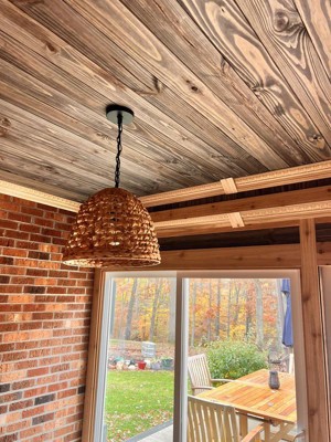 Love this pendant light. It goes well with my wood table and rattan chairs.