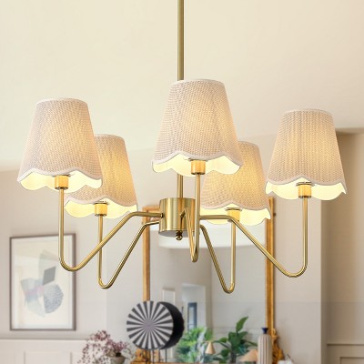 LNC Idaikos 5-Light 31.5" Polished Gold and White Shaded LED Dry Rated Chandelier: UL Listed, Adjustable Height