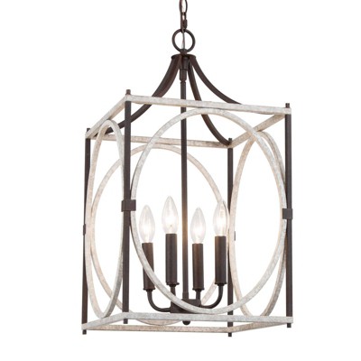 Product Name: LNC Martin 3-Lights 9" Farmhouse Lantern Mini Chandelier, Rustic Bronze and Antique Brown Wood Tone