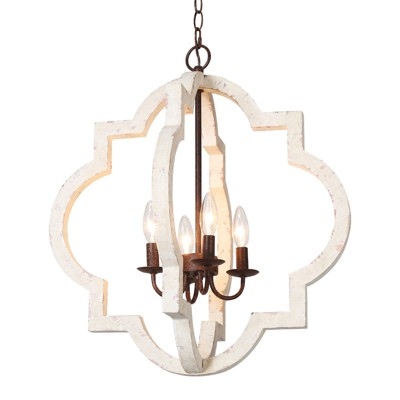 LNC Timeless 15.5-in Beaded Teardrop Chandelier,3-Light Distressed Wood and White Beads, Farmhouse Coastal