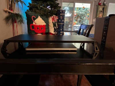 [This review was collected as part of a promotion.] This monitor stand is super high quality. You can tell it’s sturdy right when you feel it. I loved that there was no assembly, and limited packaging. Just pull it out and it’s ready to use. The black color is sleek and it has enough room underneath to store a keyboard mouse and other items if needed. Will definitely be buying another for my husbands desk!