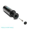 - Measurements: This small workout ball measures 8 ¼” and is crafted from professional-grade material; perfect for home, studio or therapeutic use. Inflate or deflate to adjust the size using the included pump. Pump needle is stored inside the handle, beneath the rubber cap (see image).