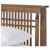 - Trapezium-shaped headboard with narrow vertical and horizontal slats
