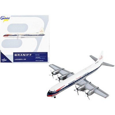 Lockheed L-188 Electra Commercial Aircraft White and Gray with Blue and Red Tail 1/200 Diecast Model Airplane by GeminiJets
