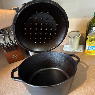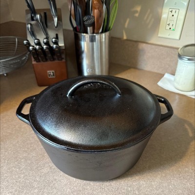 Lodge 5qt Cast Iron Dutch Oven: Preseasoned, Tarnish & Rust-Resistant, Black, 2-Piece Set, Hand Wash Only