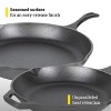 Cover all of your cooking needs with this two piece set! The Chef Collection elevates cooking through thoughtful design inspired by chefs. With generous pour spouts for pan sauces and gravies, an elevated handle for improved control, and spatula-friendly sidewalls, this skillet is bound to become a favorite for years to come. Seasoned and ready to use for an easy-release finish.