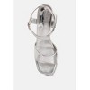 With their shimmering style, they capture the spirit of the disco era while remaining suitable for a range of summertime occasions. Whether youre going for a retro look or simply seeking a distinctive touch, these sandals are an excellent choice to make a fashion statement. Type: Sandals Upper Material: Metallic Faux Leather Light Cushion Insoles Outer Sole: TPR Open Square Toe Pin Buckle Fastening Ankle Strap Detail Platform Heels Flared Block Heel SH4628