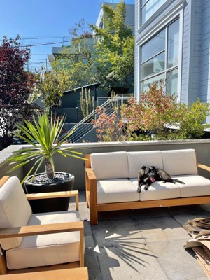 Sonoma Lane Portland Teak Outdoor Sofa with Sunbrella Vellum Zippered Cushions - Weather-Resistant, 3-Seater