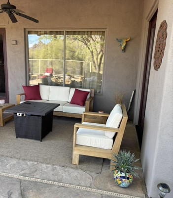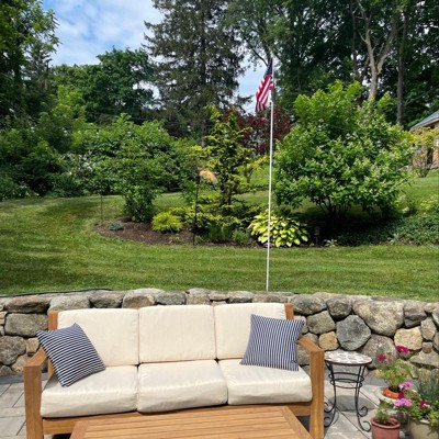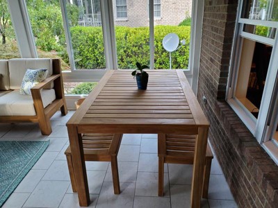I love this beautiful teak couch. It’s sturdy and looks great in my Arizona back yard! I only wish the fabric was a darker color.