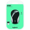 Stay productive with this Logitech M187 Wireless Mini Mouse. Pocket-ready and easy to use, it's an ideal pick for notebooks and small laptops when traveling. This Logitech Mini Mouse comes in sleek black. It includes a tiny nano receiver that stays plugged into your available USB port. Use it to enjoy the freedom of wireless with more precision and control than with a laptop touchpad. This black wireless mouse also provides the same features as a full-size mouse. It is built with a scroll button and left and right clickers. This device gives you the reliability of a cord with the convenience of going cordless. The sides are curved for a better grip when holding. Do more with the Logitech M187 Wireless Mini Mouse.