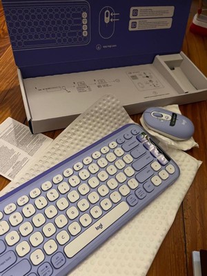 Logitech - POP ICON COMBO Compact TKL Bluetooth Keyboard and Mouse Bundle with Programmable Quiet Keys and Buttons - Lilac & Off-White