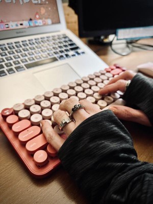 Ok, I’m old enough to remember electric typewriters. This keyboard reminds me of one and I love it! The keys are so easy to type with! I also love the pink color of it. It’s also portable which is great!
