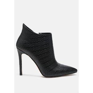 Concave Ankle Cut and pointed toe - this pair of stiletto boot has all the jazz which keeps winter look sharp. Crafted in woven textured leather, this dainty shoe has a side zipper opening. Type: Boot Heel Type: Stiletto Heel Height: 10.5 Cms./4.13 Inches Upper Material: Pleather Lining: Brushed Microfiber Outer Sole: Rubber Stylish Winter Pick Pointed Toe Side Zipper Opening The actual product color may slightly vary from the images shown on the website RCSH2670