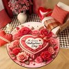 Lomsoe 1pc Valentine'S Day Round Area Flannel Mat with Red & Pink Flowers & Hearts Design - Non-Slip,Mat for Bedroom, Living Room. - 1 of 4