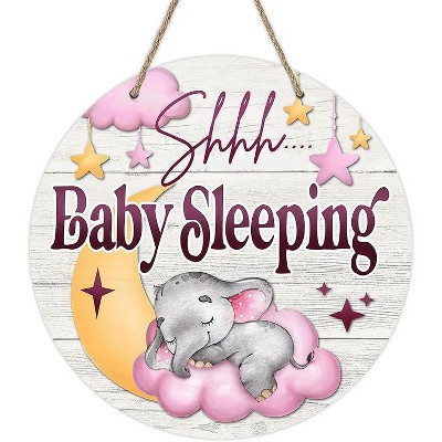 Lomsoe Baby Sleeping Front Door Sign Elephant Moon Wood Door Hanger Baby Boy Girl Room Rustic Wooden Indoor Wall Hanging Decor Birthday Gift 8x8Inch