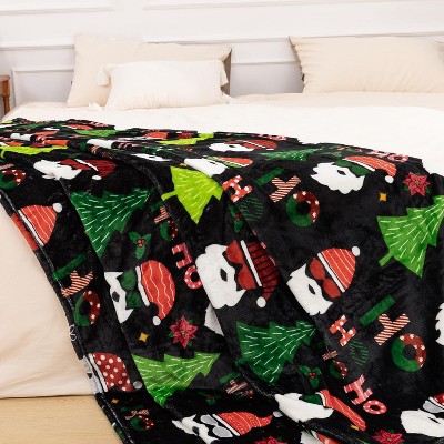 Lomsoe Christmas Snowman Print Black Throw Blanket, Winter Holiday Bed Blanket Super Soft Flannel Blanket Cozy Fuzzy Plush Throw Blanket for Couch