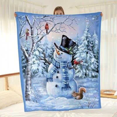 Lomsoe Christmas Snowman with Cap Blanket Super Soft Flannel White Snowflake Throw Blanket Lightweight Cozy Warm Fuzzy Christmas Gift.