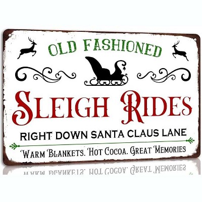 Lomsoe Winter Wonderland Sleigh Rides Metal Tin Sign Christmas Theme Retro Poster Christmas Wall Decor Art Winter Decoration Vintage Plaque 8x12 Inch