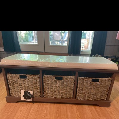 I purchased this bench in washed natural pine, but the actual color is not what is pictured online. The color is more of a light brown color that does not have a natural wood appearance. The bench itself feels sturdy and it was not hard to put together. I also like the storage bins that come with it.