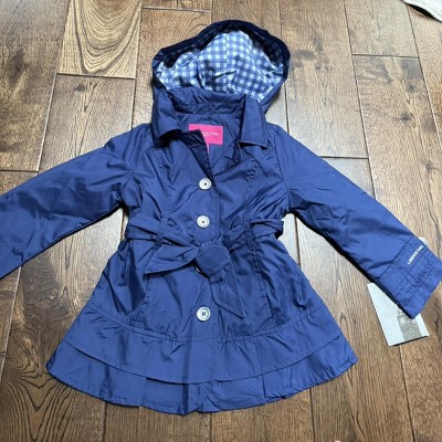 Product Name: LONDON FOG Little Girl's Lightweight Hooded Trench Dress Jacket, Navy Solid, 4