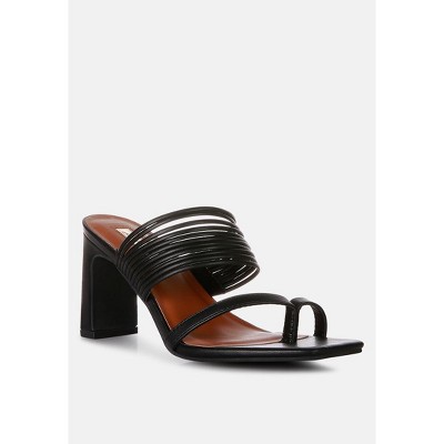 With bangle strap detailing and light cushioning for comfort, these mid-heel block sandals are here to make a statement wherever you walk! The sandals have a toe ring detail and thin faux leather straps making them look extra gorgeous on your feet.
