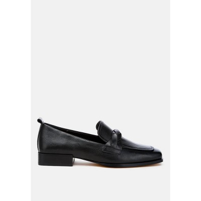 Black Low Block Loafers this pair comes accented with hardware detailing for a touch of contemporary charm while the cushioned core renders unlimited comfort. Upper Material: Textured Faux Leather Lining Material: Polyurethane Outer sole: TPR Metal Chain on Top Women's Formal Shoes Metal Sling on Top SH2902
