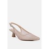 Stunning sling back heels with rhinestone details, a pointed toe, and a feminine kitten heel make this pair stand out in your shoe closet for all the right reasons! Type: Mules Upper Material: Mesh Light Cushion Insoles Outer Sole: Rubber Rhinestone Embellished Detail Pin Buckle Fastening Kitten Heel Closed Pointed Toe Light Cushion Insole SH4724