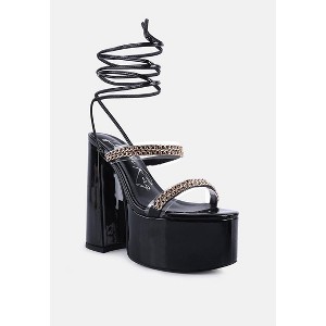 Indulgence Metal Chain Lace Up Chunky Sandals - 1 of 4