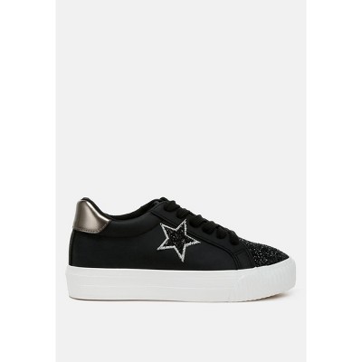 Take your sneakers game up a notch with our glitter sneakers! Made with high quality faux leather, the sneakers have a comfortable cushion insole which cuts strain and offers a relaxed fit. Type: Sneakers Upper Material: Glitter + Faux Leather Outer Sole: TPR Closed Round Toe Flatforms Lace Up Design Comfortable Cushion Insoles Glitter Detail Metallic Exterior Detail Heel Height: 1 inch SH4933