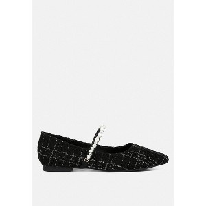 Sophisticated elegance, the mary jane ballet flats are a treat to the eyes with the tweed exterior and pearl and diamante embellished strap that looks ravishing. The ballerinas are an ideal choice as wedding guest shoes with their comfort and stylish design. Type: Mary Jane Ballerinas Upper Material: Tweed Light Cushion Insoles Outer Sole: TPR Flat Heels Closed Pointed Toe Pearls & Diamante Embellished Strap SH4542