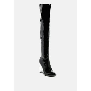 Noire Thigh High Long Boots In Patent Pu - 1 of 4