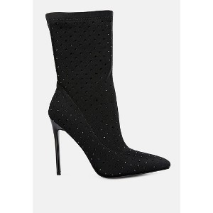 Cheugy Embellished Ankle Boots have rhinestone detailing, that stand out in a crowd of a million. These are high stretch lycra boots with a closed pointed toe. These heeled boots will dazzle the crowds making you the Boss Babe you deserve to be. A perfect fit for an evening or just go with the flow night, pick out these embellished girls boots and go for a night that you wont forget. Outer material: Knitted Lycra Lining Material: Synthetic Outer sole: TPR Closed Pointed Toe Side Zipper Opening Pointed High Heel Rhinestone Boots High Stretch Lycra Boots SH3863