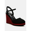 Ideal for pairing with a sundress or a wedding gown, these wedge sandals feature a microfiber upper and comfortable high wedge heels. The platform sole has a contrasting striped heel detail, and the pin buckle slingback strap offers a customizable fit. With a closed-round toe design and comfortable cushioned insoles, this pair is a must-have! Type: Wedge Sandals Upper Material: Microfiber Outer Sole: TPR Closed Round Toe High Wedge Heel Pin Buckle Slingback Strap Dual Tone Heel Detail Platform Sole Comfortable Cushion Insoles Heel Height: 3.5 inches SH4893