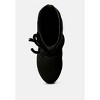 The chunky boots sure do make a bold statement with the velvet high platform heel and tie up detail which is contrasting against the knitted exterior of the ankle boots. The lace up boots are trendy, chic, and a must-have if you want to upgrade your shoedrobe. Outer material: Knitted Textile and Velvet Lining Material: Synthetic Outer sole: TPR Closed Toe Ankle Boots for Women Velvet Tie Up Detail Velvet Platform Block Heel Lightly Padded Insole Autumn/Winter Boots SH3931