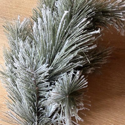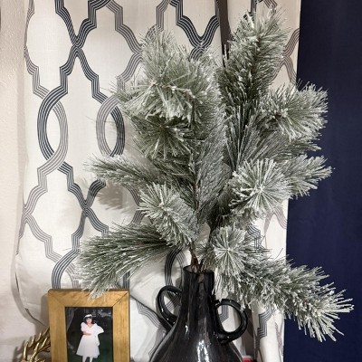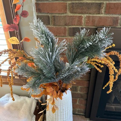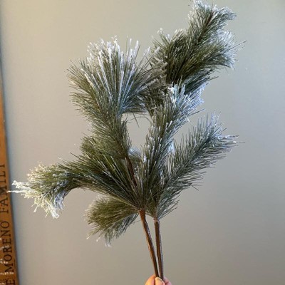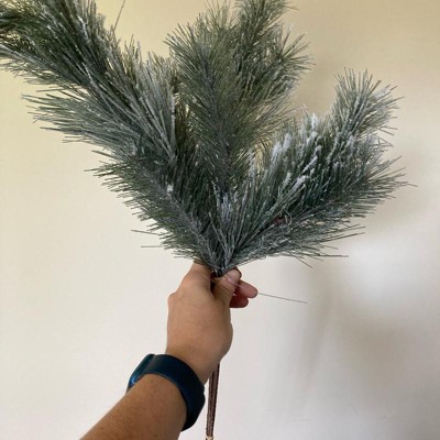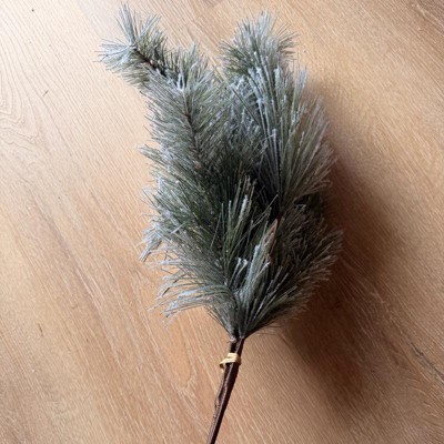 Bring gorgeous greenery to your home with this Long-Needle Flocked Artificial Stem from Threshold™. This artificial stem features faux foliage of long pine needles decorated with flocked detailing for a festive look. You can house them in a glass vase for beautiful table decor or pair them with other stems to decorate the entryway console.