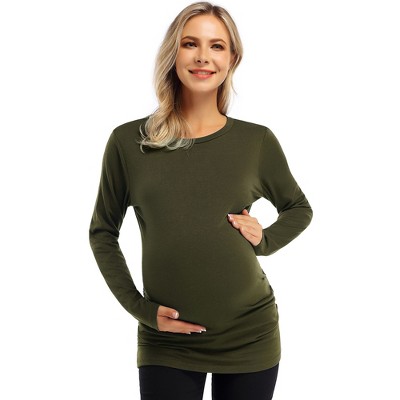 Maternity Shirt Side Button and Ruched Maternity Tunic Tops Maternity Long Sleeve T-Shirts