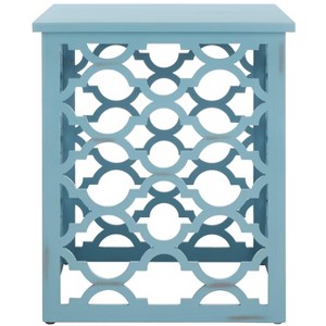 Inspired by intricate Moroccan architecture, the open lattice of this Lonny End Table brings an airy feel to any living space. Lonny's clean-lined rectangular shape beautifully contrasts its curved quatrefoil pattern, while a modern blue finish updates the timeless look.